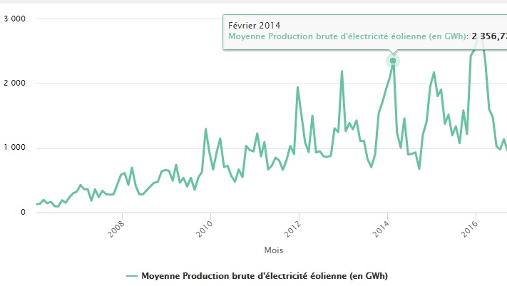 production brute d'électricité éolienne en france (en gwh)
