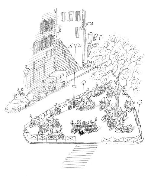 place envahie par les motos
