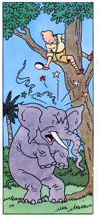 tintin brûle un éléphant avec sa loupe