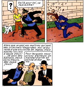 capitaine haddock gaspille une bouteille en la lançant pour stopper un méchant