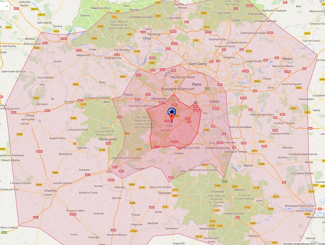 carte isochrone autour d'orsay (2017)