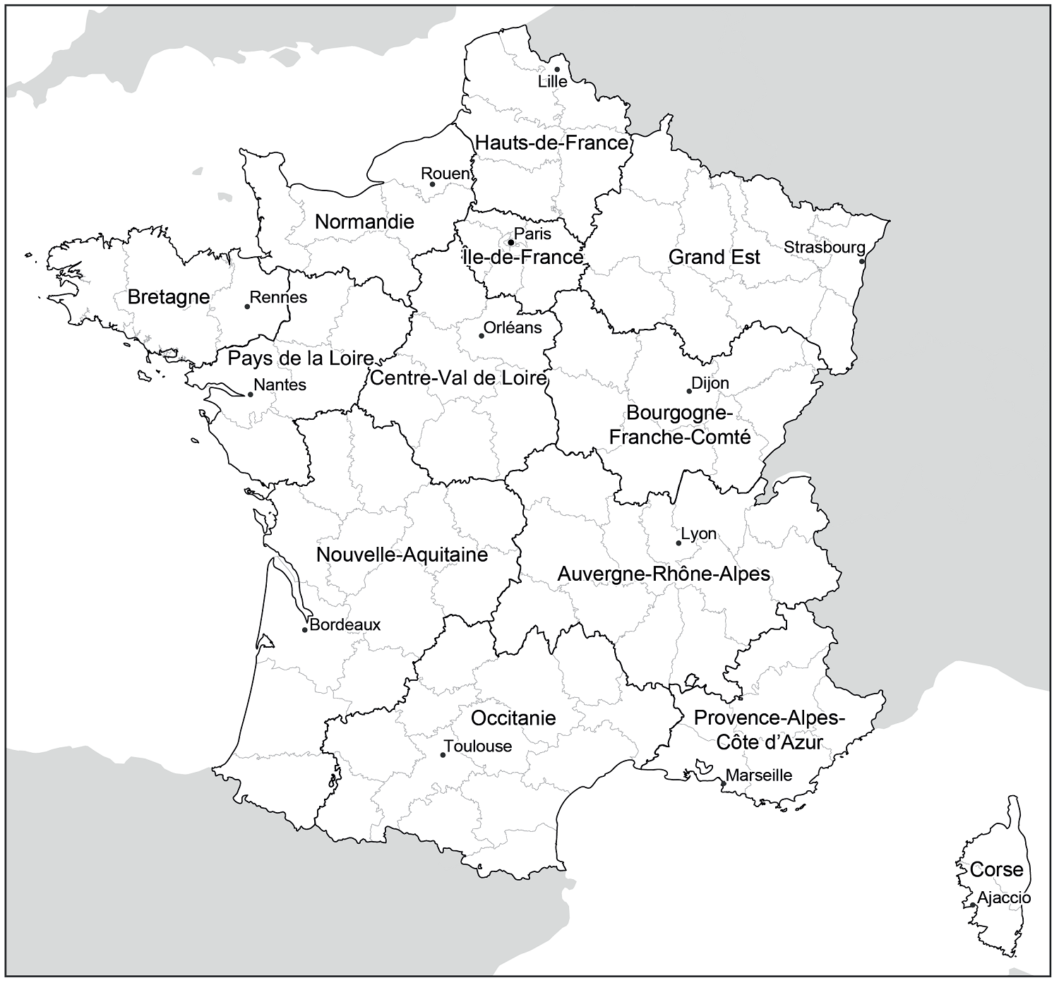 carte de france des départements et régions