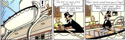 un ami de tintin rame alors que le bateau n'est pas dans l'eau