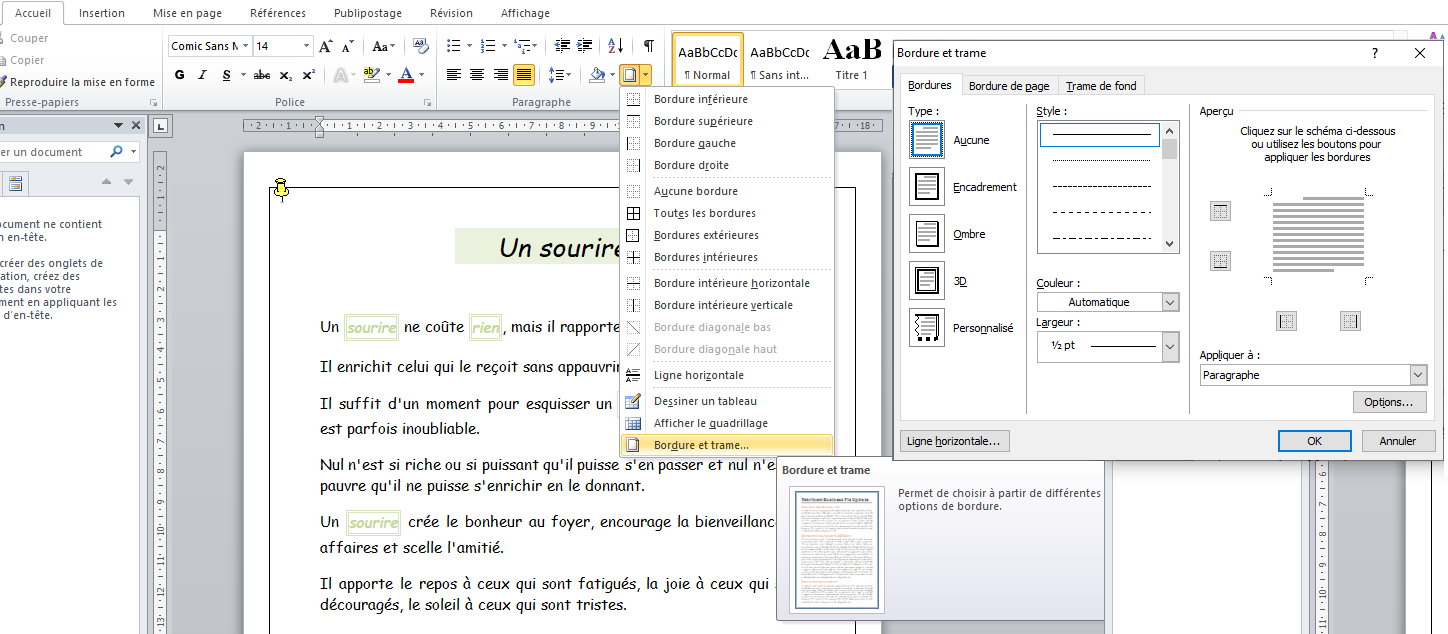 bordure et trame