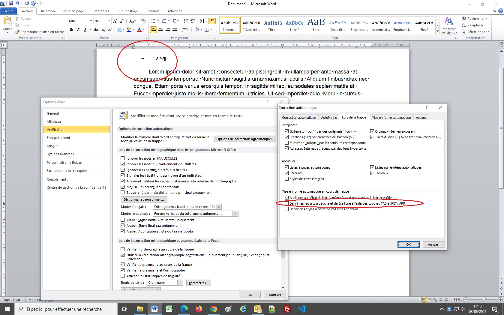 touche tabulation qui fait un retrait première ligne